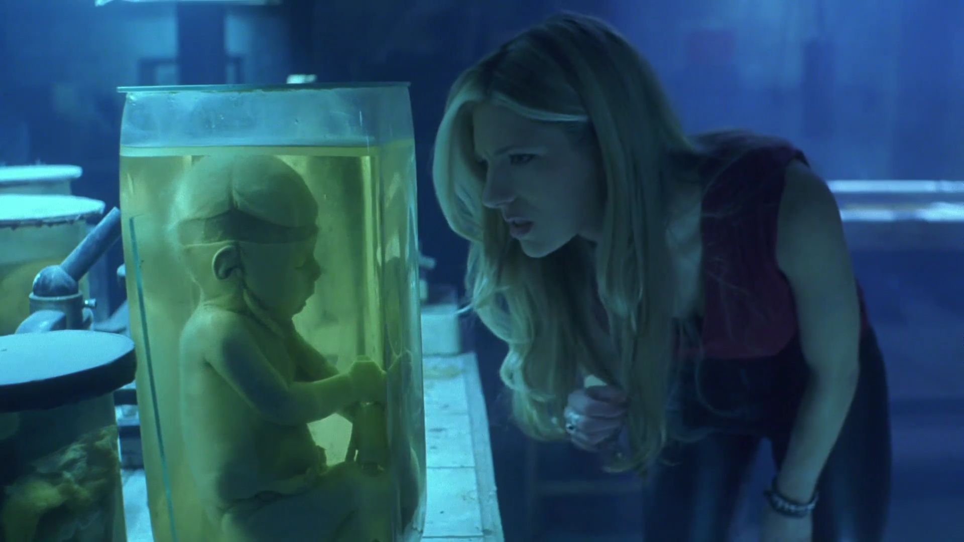 Jars with deformed heads and babies are reminiscent of what you’d find in The Nightmare Before Christmas. Still quite enjoyable, though, as the props are fun to look at, and reactions from the actors leave you wishing they would watch more horror movies.